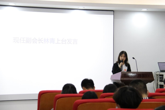 会上,主持人对建院红会做出了简要的介绍后,指导老师贾朝强老师上台发言,他对红会的现有的工作成果表示赞许,并对红会成员们提出工作要热情负责的要求,并在最后表达了对红会未来工作的期许。随后由红会前任副会长杨丽琳上台发言,前任副会长通过介绍自身曾经在红会的工作经历,让新成员更加熟悉红会大家庭,并激励仍留任的部长们继续认真负责的完成接下来红会的一系列工作。杨丽琳师姐发言结束后,现任副会长林青上台发言。她对红会前一年的工作发展做出总结汇报,同时指出了红会所存在的各部门间信息不流通,全体红会及各部门的活动团建较少等问题,并为此提出了新的解决方案。最后由会助冯少君发言,她通过讲诉自己大一在红会面试的经历,表达对前红会部长们的感激,并表示自己作为会助会全心全意地协助红会各项工作。