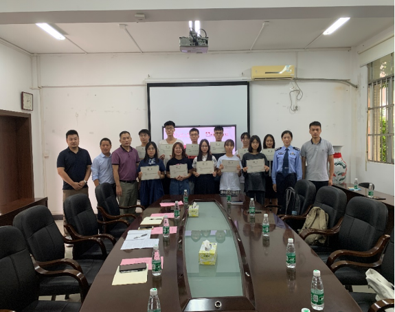 全体学生志愿者团队颁发由黄花岗派出所制作的聘书。参会的老师、学生们交流互动,分享自己的遇到的诈骗案例并提出志愿者宣传队开展的想法和建议。