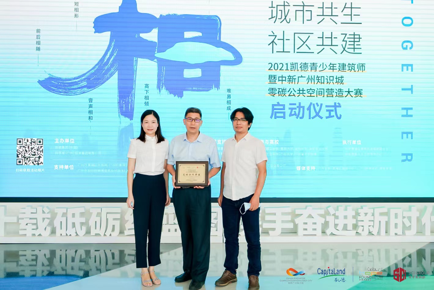 9月26日,学院党委书记钟兆明老师、建筑系叶建平老师、学院团委书记刘悦老师和学生代表一行,参加由中新广州知识城开发建设办公室、共青团黄浦区委员会、广州市黄浦区水务局共同主办的“城市共生 社区共建”2021凯德青少年建筑师暨中新广州知识城零碳公共空间营造大赛启动仪式。