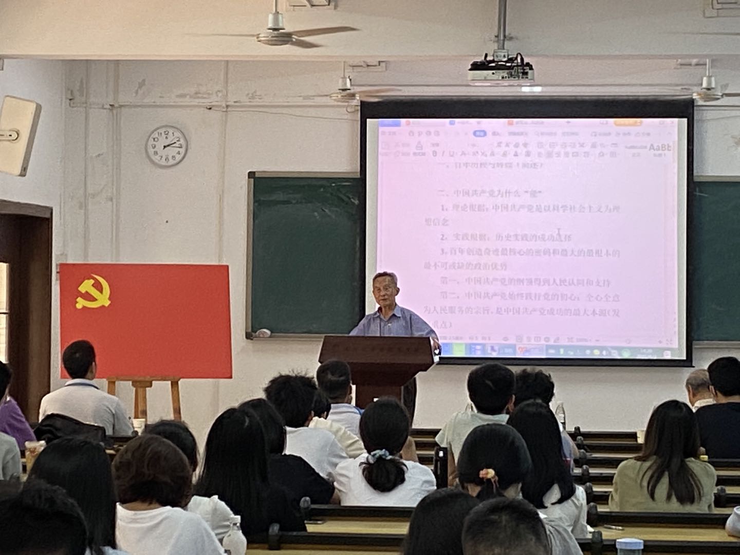 秦兴洪教授结合当前的时政热点,系统阐述了中国共产党的伟大奋斗历程及精神谱系,并借此勉励在座各位积极分子要不断增进对党史的认知,进一步领会党的先进理论精神实质和内涵,不断提升自身的党性修养,争取早日成为一名合格的共产党员。