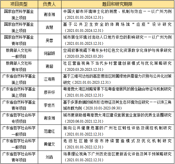 在老师们的共同努力下,2020年度学院科研工作稳中有进,绝大部分指标超额完成。对照学院制定的年度科研任务指标,国家基金立项、省部级基金立项、高水平论文发表、省部级以上获奖等方面均超额完成。其中,国家基金立项3项、教育部人文社科立项2项、省哲社和省自科等省部基金立项7项,市科技计划立项3项,其它开放基金立项8项,纵向基金立项数在省内同类学院名列前茅;发表高水平论文35篇,其中T类论文11篇,TOP论文7篇,出版专著2部;荣获中国风景园林学会科学技术奖、华夏建设科学技术进步奖、全国优秀城乡规划设计奖、广东省优秀工程咨询奖等省部级以上奖项11项。