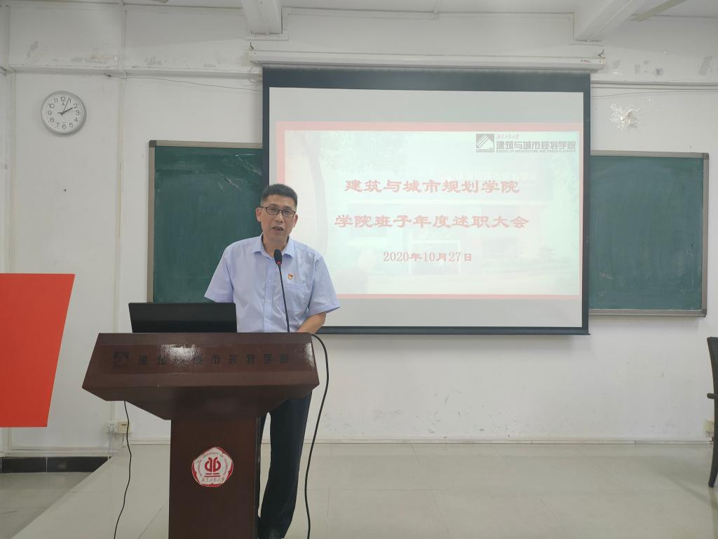 会上,钟兆明书记代表学院班子进行了述职。钟书记从加强思想政治建设、班子能力建设、党风廉政建设以及作风建设等四大方面汇报了上学年度学院班子自身建设的情况,回顾了在班子成员带领下,学院师生在党建、师资、学科、科研、人才培养等方面取得的成效。他感谢全院师生对学院发展作做出的贡献以及对学院班子上学年工作的支持、配合和监督。他表示,在新的学年里,学院班子将坚持以习近平新时代中国特色社会主义思想为指导,围绕建设“省内有话语权、大湾区有影响力、全国有知名度”建筑类学院这一目标,紧紧抓住粤港澳大湾区建设和学校高水平大学的历史性机遇,带领全院师生为切实推动学院高质量发展而继续努力奋斗!