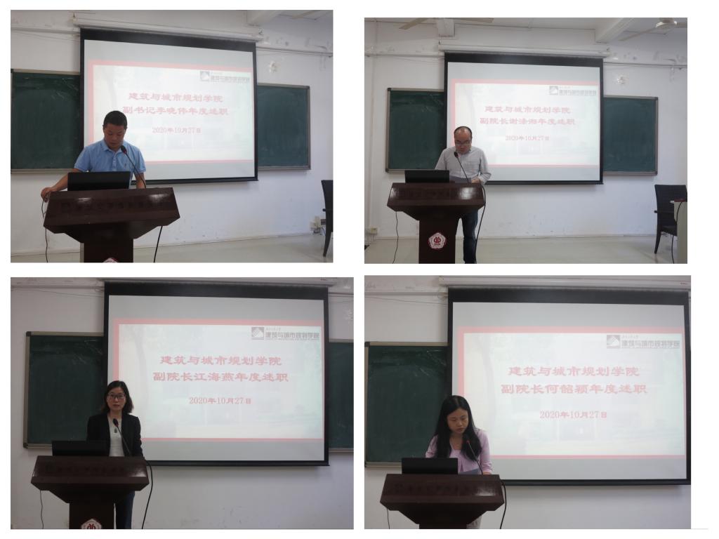 随后,班子成员钟兆明、蔡云楠、李晓伟、谢涤湘、江海燕、何韶颖分别从德、能、勤、绩、廉五个方面,围绕各自岗位职责、上一学年的工作思路、重点、成效以及存在问题逐一进行了工作述职发言。