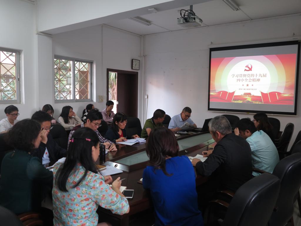 党委理论学习中心组召开扩大会议,专题学习党的十九届四中全会精神。学院党委委员、教工与学生党支部支委成员、办公室党支部全体党员参加学习。会议由学院党委书记钟兆明主持。