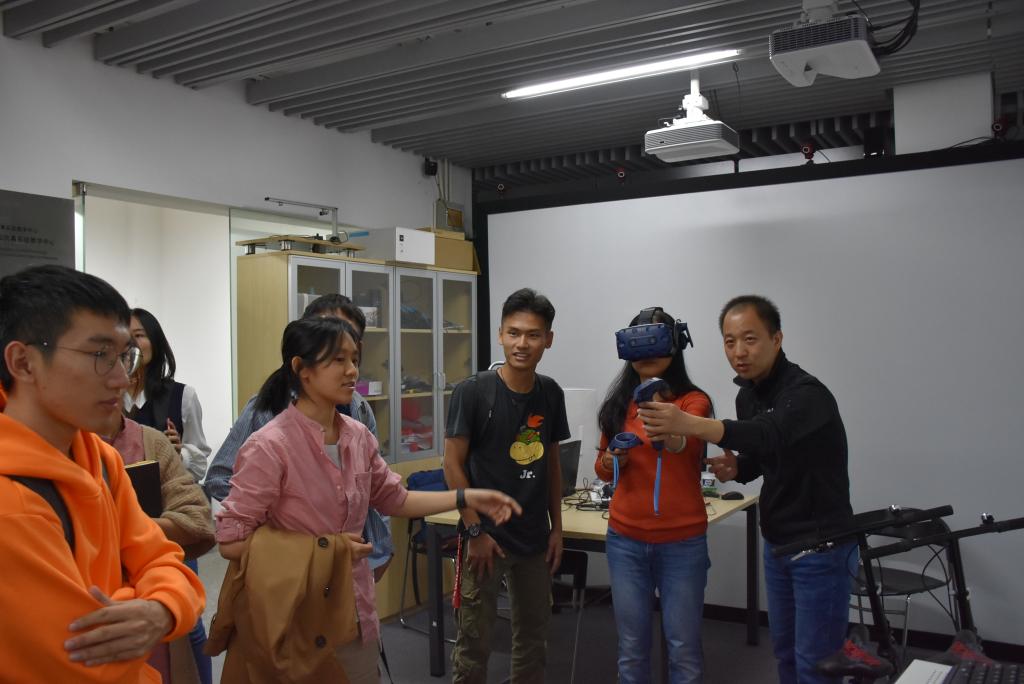 汤众教授带领师生参观了亚太地区世界遗产培训与研究中心、数字设计研究中心、历史建筑保护实验中心,对他们主持的澳门圣母雪地殿、天安门金水桥等历史建筑的修护过程进行了解说,讲解了修复建材的使用和技术创新手段。汤教授对他正在主持开展的宋代保国寺大殿仿真建构实验进行了详细介绍,对数字技术的使用开展了现场教学。随后,师生们来到建筑规划景观国家级虚拟仿真实验教学中心(同济大学),在实验中心老师的指导下切身体验了虚拟仿真搭建技术。