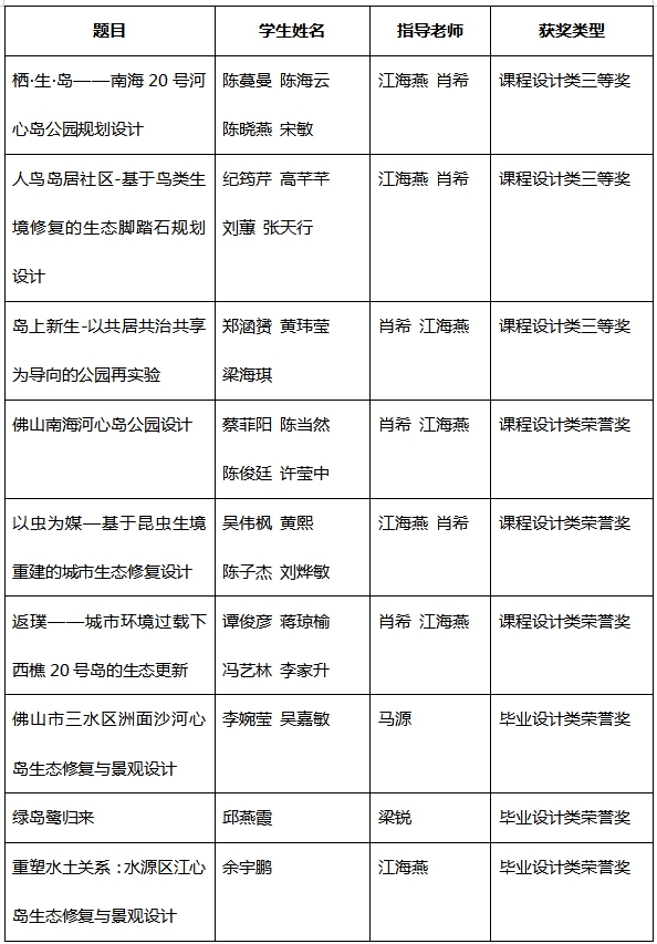风景园林系学生参加第十届园冶杯国际竞赛获奖9项