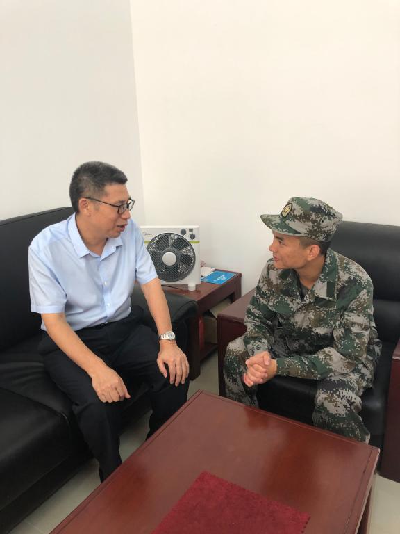 2019年参军入伍同学李鹏程即将奔赴绿色军营之际,9月10日上午,学院党委书记钟兆明专门与李鹏程谈心。钟兆明书记对李鹏程同学光荣入伍表示热烈祝贺,希望他在部队能严守纪律、服从命令,磨练意志、锤炼品格,尽快完成从学生到军人角色的转变,并充分发挥大学生文化素质高的优势,在传播文化知识上争当“排头兵”。李鹏程同学感谢学院三年来的培养和教育,表示已做好了充分的思想准备,做好一名光荣的人民解放军战士,为学院争光。
