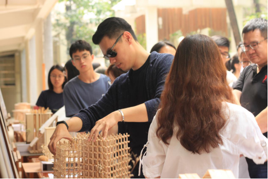 实际答辩的共二十四支队伍,学院近1/5的学生参与其中。二十四个作品各有千秋,可谓精彩纷呈。经过了选点、分析、构思、模型等一系列步骤的答辩选手也都对自己队伍的作品胸有成竹,从容地向评委与同学们介绍设计成果;当评委对作品提出疑问时,答辩选手对场地选址、设计构思、实体模型进行详细的分析,并从容地结合模型与展板进行详细说明,力求将设计亮点展示得更全面;同时,对于作品的不足之处,评委也会给予相应的建议,并多次强调竞赛需要突破尝试的精神,鼓励学生打破具象固化思维,以开放的思维探索更多空间表达的形式,实现以意为主、以形态体现意境的效果。