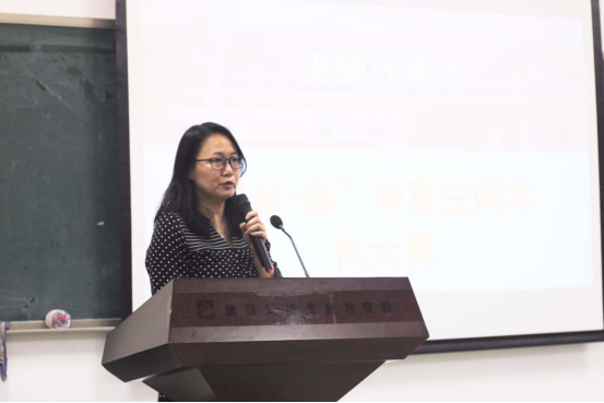 首先,曹跃老师从木构建筑的概念、搭建作品分享、搭建大赛的建议等几个方面作了开题的发言。她先是对木构建筑的源头作了解释:由于我们国家既没有火山又经常发生地震的原因,我国的建筑主要以木构建筑为主。随后,她分享了一些优秀的搭建作品。其中,她建议参赛选手们可以参考日本的木构建筑,同时也要掌握木构建筑的基础知识。她还提醒道,建筑作品不要复杂型的,简约纯净的反而更胜一筹。最后,她强调,由于搭建基地的空间大小上及经费上的限制,参赛选手们需要提高对场地尺度的把握度以及方案可行性的衡量能力。