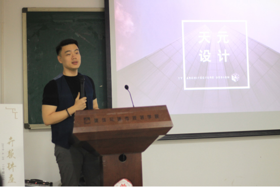 本次比赛得到了天元设计院的倾情支持。两位老师的开题演讲结束后,天元设计院一院院长张晓聪先生对本次学术科技节的搭建木构建筑的活动参赛者提出了不同角度的建议:他以天元公司作品为例,期待参赛选手们的木构建筑的搭建要做好对服务的人群的定位的。