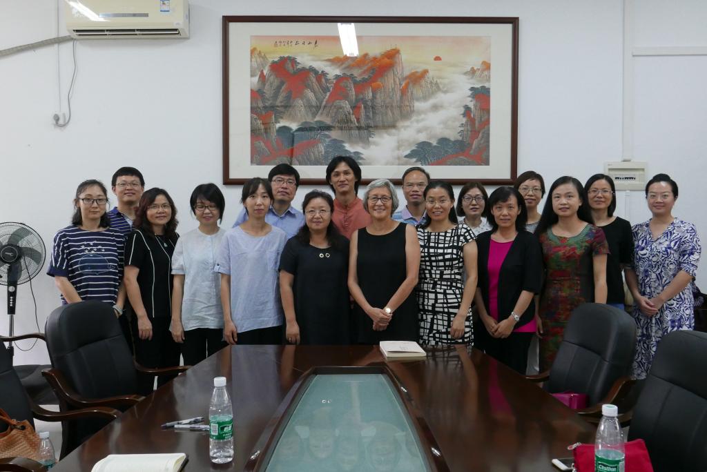 上午10点,Renee教授与朱雪梅院长、周祥副院长以及建筑学、城乡规划和风景园林专业的系主任和骨干教师就学院本科和研究生教学开展教学研讨。在朱雪梅院长简短的欢迎辞后,周祥副院长详细介绍了学院发展历程、院系专业构成、师生情况、专业教学计划等内容。Renee教授侧重结合两所院校在专业设置、师生构成、课程组成和学分分配等方面的异同对加州大学伯克利分校环境设计学院的教学进行讲解,并就教师提问给予详尽解答。教学研讨结束前,Renee教授和朱雪梅院长互赠专著作为留念。