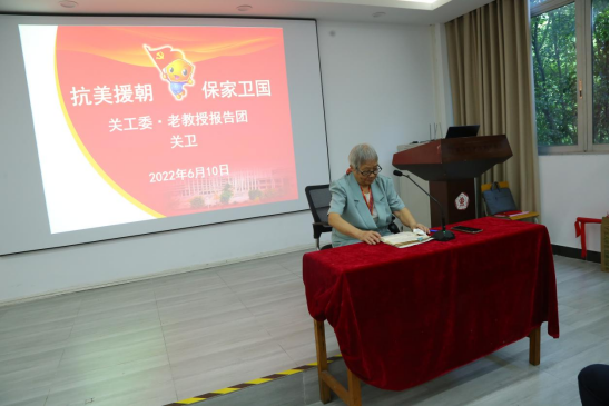 社科部。关教授首先向即将走向工作岗位的党员同学表达了亲切关怀,嘱咐同学们要迈好人生关键一步,珍惜光阴,以饱满的精神状态投入新的广阔天地。她饱含感情地讲述了自己在抗美援朝战争中的经历。在党的培养和领导下,当时只有17岁的她在朝鲜战场克服了重重困难,坚决把本职工作做好。虽然人民志愿军在战场上面临着极大的困难,但党领导下的军队却敢于挑战困难、迎难而上、不畏强敌、敢于亮剑。在部队中,共产党员总是处处做表率。在后勤补给困难的时候,共产党员带头让出自己的一份口粮,让年轻的小战士先吃。在战斗间隙,共产党员利用休息时间带领战士们学文化。在战斗中,她亲眼目睹身边的战友在共产党员的带领下发起一次又一次冲锋。在最艰难的时刻,都是共产党员率先站出来参加突击战斗。为了党和人民的利益,她身边有很多优秀的共产党员献出了宝贵的生命。说到动情处,关教授哽咽了,眼里闪烁着晶莹的泪花。最后,关教授对同学们提出三点期望:一是要坚定理想信念,牢记党的初心使命;二是要涵养家国情怀,勇担时代责任与使命;三是要有不惧艰难勇向前、顽强拼搏敢争先的勇气。