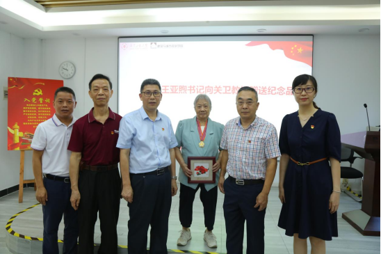 王亚煦书记向关卫教授赠送纪念品,向关教授致以崇高的敬意。