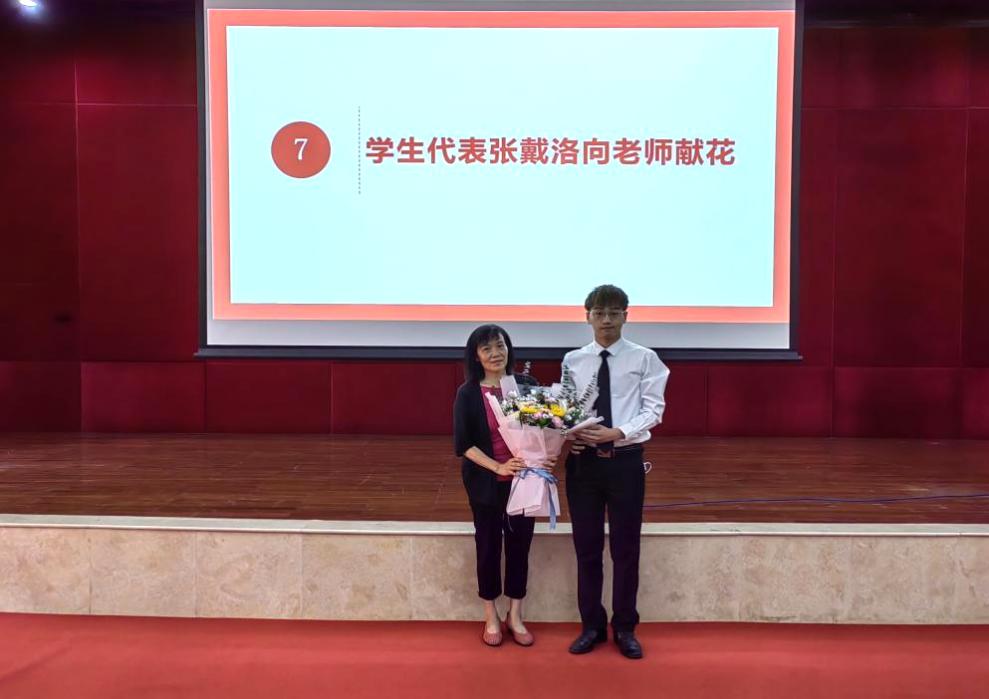 喜逢教师节,新生代表张戴洛带领全体新生共同向学院全体老师献上真挚的教师节祝福,并代表全体新生向多年来无私、辛勤付出得建筑学系系主任刘旭红老师献花。