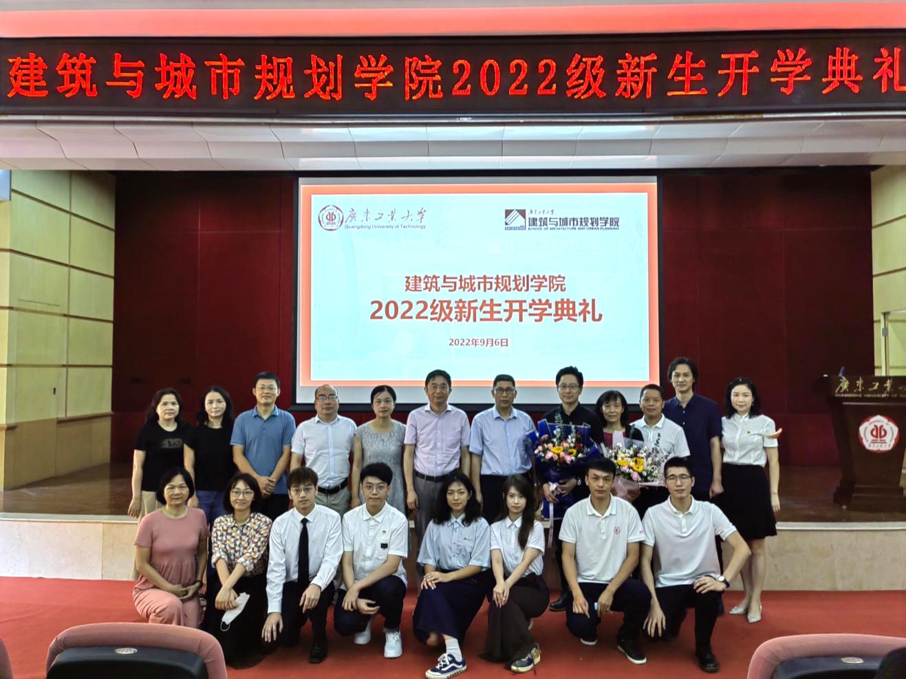 在图书馆八楼学术报告厅举行2022级新生开学典礼。广州市设计院集团有限公司总经理助理、第三建筑设计院院长、2003届校友白帆,学院钟兆明书记、蔡云楠院长、李晓伟副书记、谢涤湘副院长、何韶颖副院长、学院办公室、实验中心、各专业系主任、新生班班主任、全体辅导员与全体2022级本科生、研究生共同出席了典礼。