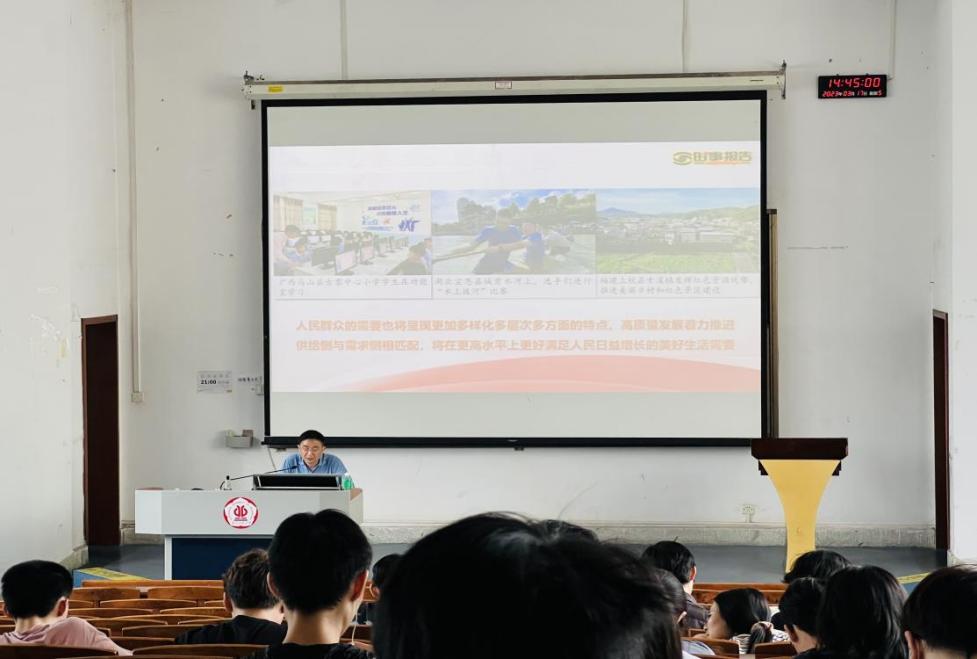蔡云楠院长以《开创高质量发展新局面》为题,围绕我国新时代高质量发展的“首要任务”“内涵要求”“战略部署”三个维度剖析了我国新时代推动高质量发展的必要性、紧迫性及重要举措。蔡院长勉励同学们要立足专业、夯实基础、锚定方向、扬帆远航、逐梦未来,在我国全方位高质量发展中发挥专业所长,在全面建设社会主义现代化国家新征程上书写青春新篇章。