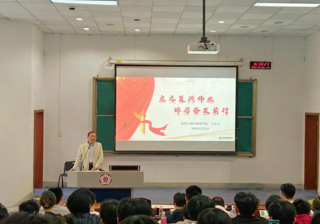 王伟文书记以《立志复兴伟业 踔厉奋发前行》为题,以党的二十大报告内容为纲,结合党的二十大报告中提出的新观点、新论断、新战略、新要求,从永载史册的伟大变革、引领复兴的宏伟蓝图和笃行不怠的战略定力三方面讲述了中国共产党团结带领全国各族人民,坚定信心、迎难而上,夺取一个个伟大胜利、取得一系列标志性成果背后的重要密匙。王书记寄语同学们,作为新时代未来的建设者,要深入学习领会党的二十大精神,深刻认识党和国家新时代十年来的伟大变革及里程碑意义,勉励同学们要牢记习近平总书记对青年的嘱托,踔厉奋发,以奋斗姿态激扬青春,不负华年。