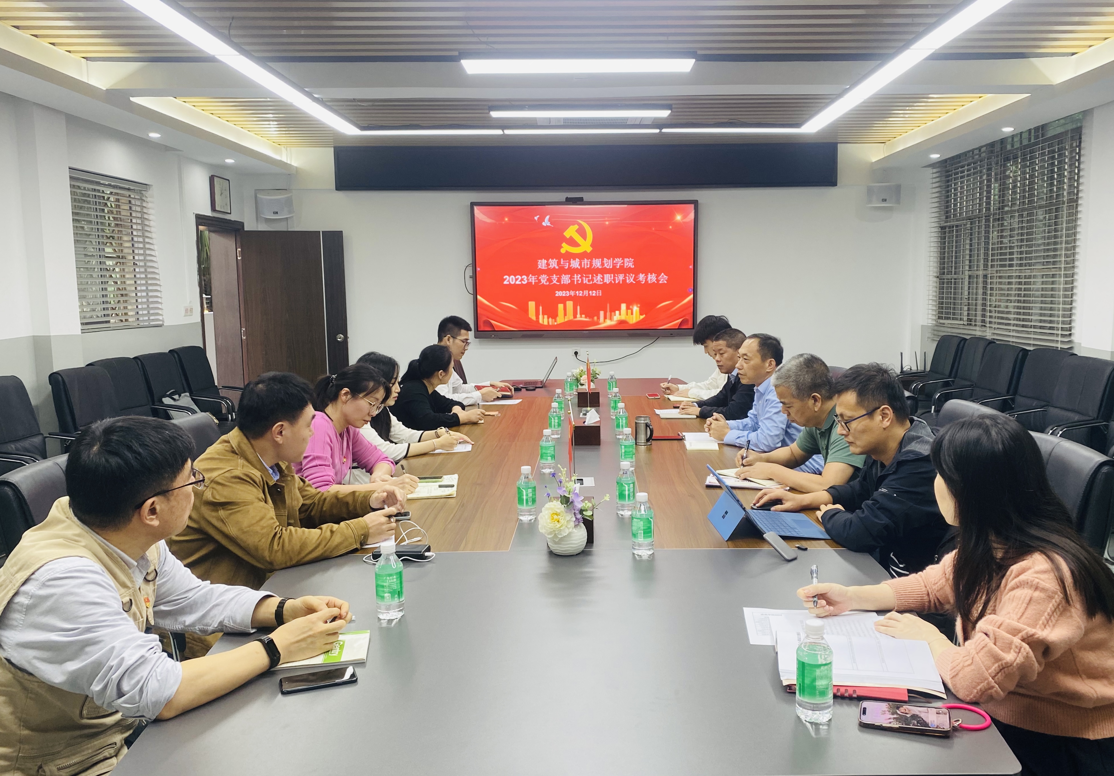 在1号楼311召开2023年党支部书记述职评议考核会,学院党委书记王伟文、各党支部书记共12人参加会议。