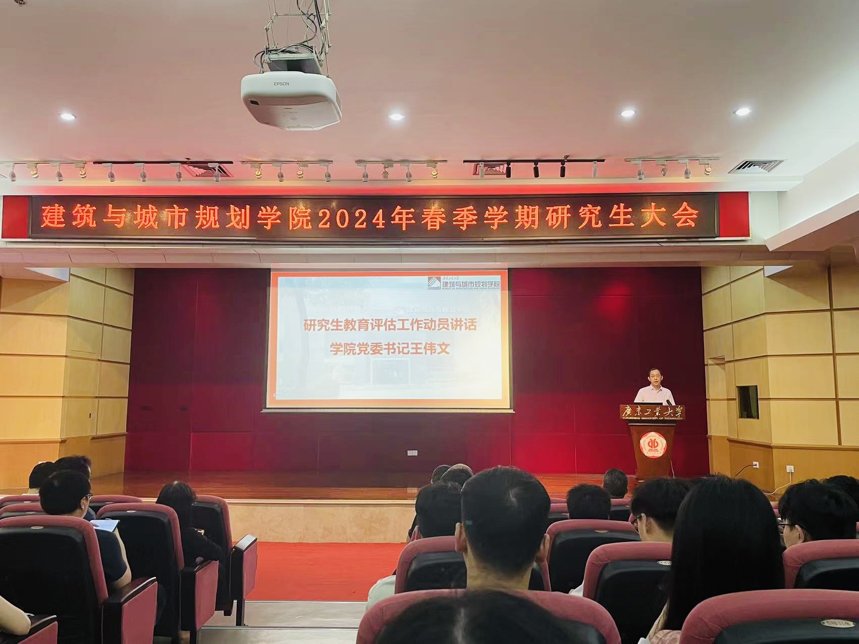在东风路校区图书馆八楼学术报告厅召开2024年春季学期研究生大会,学院党委书记王伟文、党委副书记李晓伟、副院长廖开怀、研究生导师、研究生辅导员及研究生参加会议,会议由李晓伟主持。