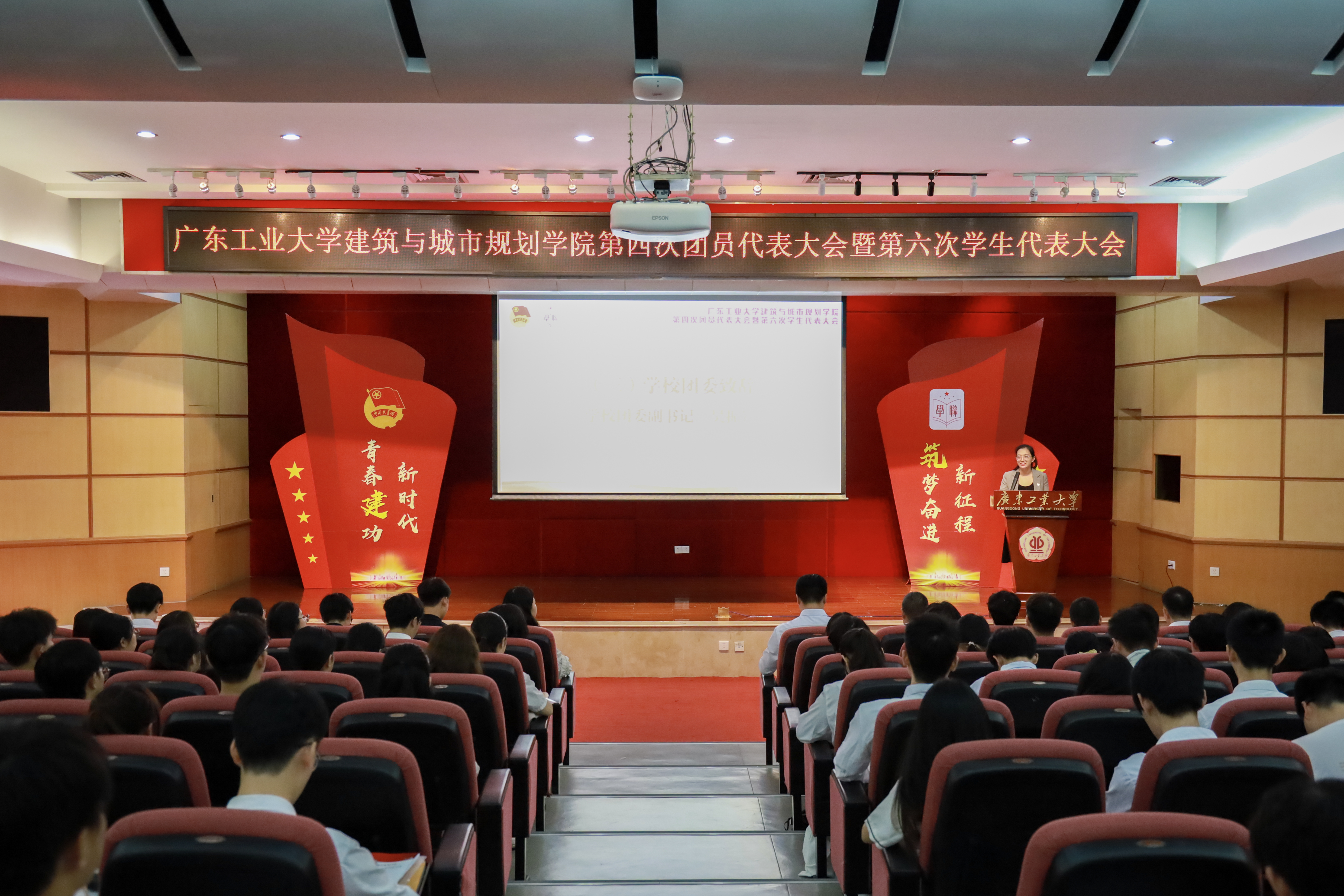 大会在高昂庄严的国歌声中拉开帷幕。吴振铨在大会上致辞,他首先充分肯定了近年来学院团学工作所取得的成绩。学院团学工作紧紧结合学科特色,开展了具有鲜明专业特点的思想引领工作,取得了多个“首次”,在全校团学工作中发出了“建院声音”,形成了“建院品牌”。学院创新创业成绩斐然,每年有国奖;志愿服务成效显著,“爱的建筑师”项目在第六届中国青年志愿服务项目大赛中荣获铜奖,学院被省委宣传部命名为“第十批广东省学雷锋活动示范点”;学院师生积极投身广东省“百千万工程”中,为乡村振兴贡献建院青春力量。他还对学院团学工作提出三点希望,第一是要筑牢思想根基,永远听党话、跟党走,把身边青年团结起来、组织起来、动员起来,在学校高质量发展中勇当先锋队、突击队。第二是要围绕中心工作,不懈求真知、长才干,在自己所能的领域找准着力点,扬长避短、形成特色、发挥优势。第三是要坚守家国情怀,始终敢挑战、勇攀撑。让青春在党和人民最需要的地方绽放绚丽之花!