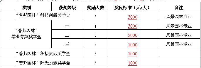 (三)“普邦园林”积极贡献奖学金 评定标准