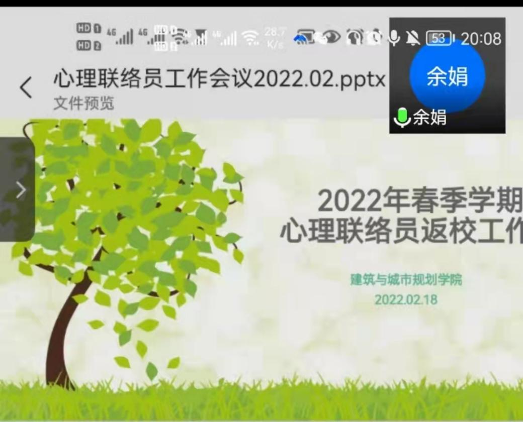通过线上会议组织召开了新学期第一次心理联络员会议,原心理指导老师张梦迪和新任心理指导老师余娟以及全体心理委员、心协成员参加了会议。