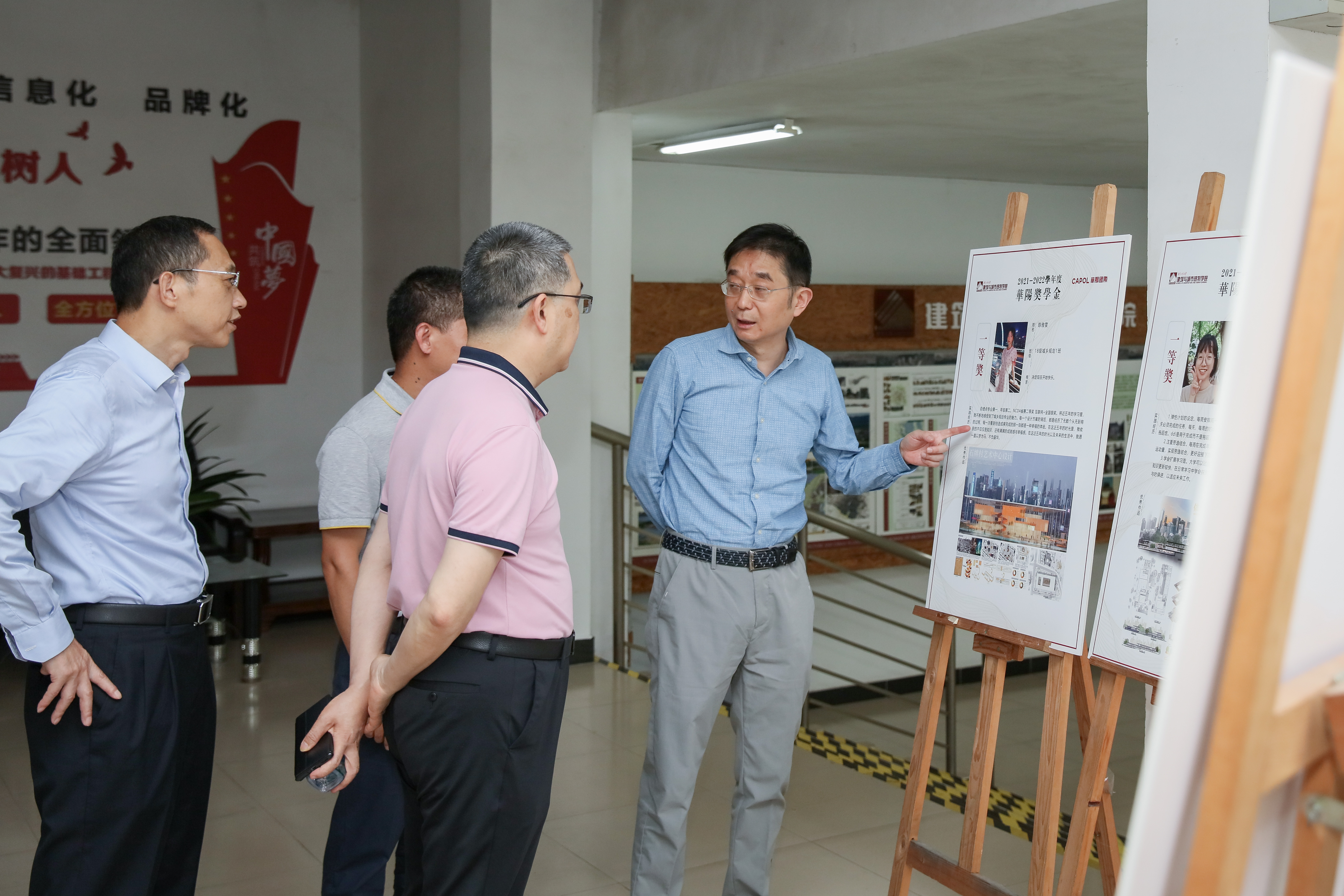 到场嘉宾共同参观获奖学生成果展
