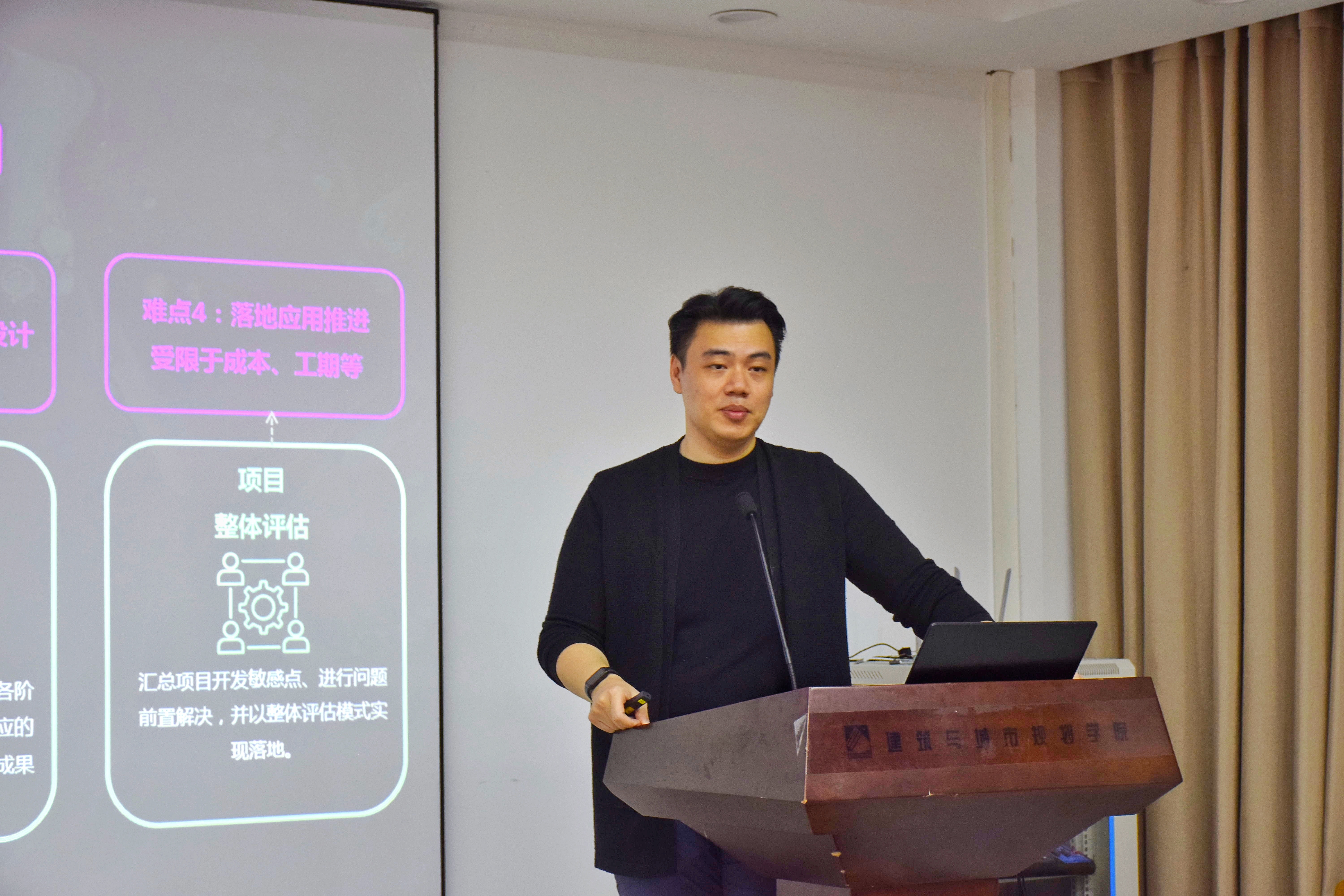 张晓聪师兄结合自身经历阐述数字化转型对建筑行业带来的影响,谈及BIM“终身负责制”与技术创新应用等。他鼓励同学们以多重视角看待未来的建筑类专业,进行全域的组合分析,他提到:“我们在学校里学的更多是基础学科的东西,是各位应该在未来拥有的基础能力,而未来的建筑学专业可能会与其他专业产生联系与共鸣。”